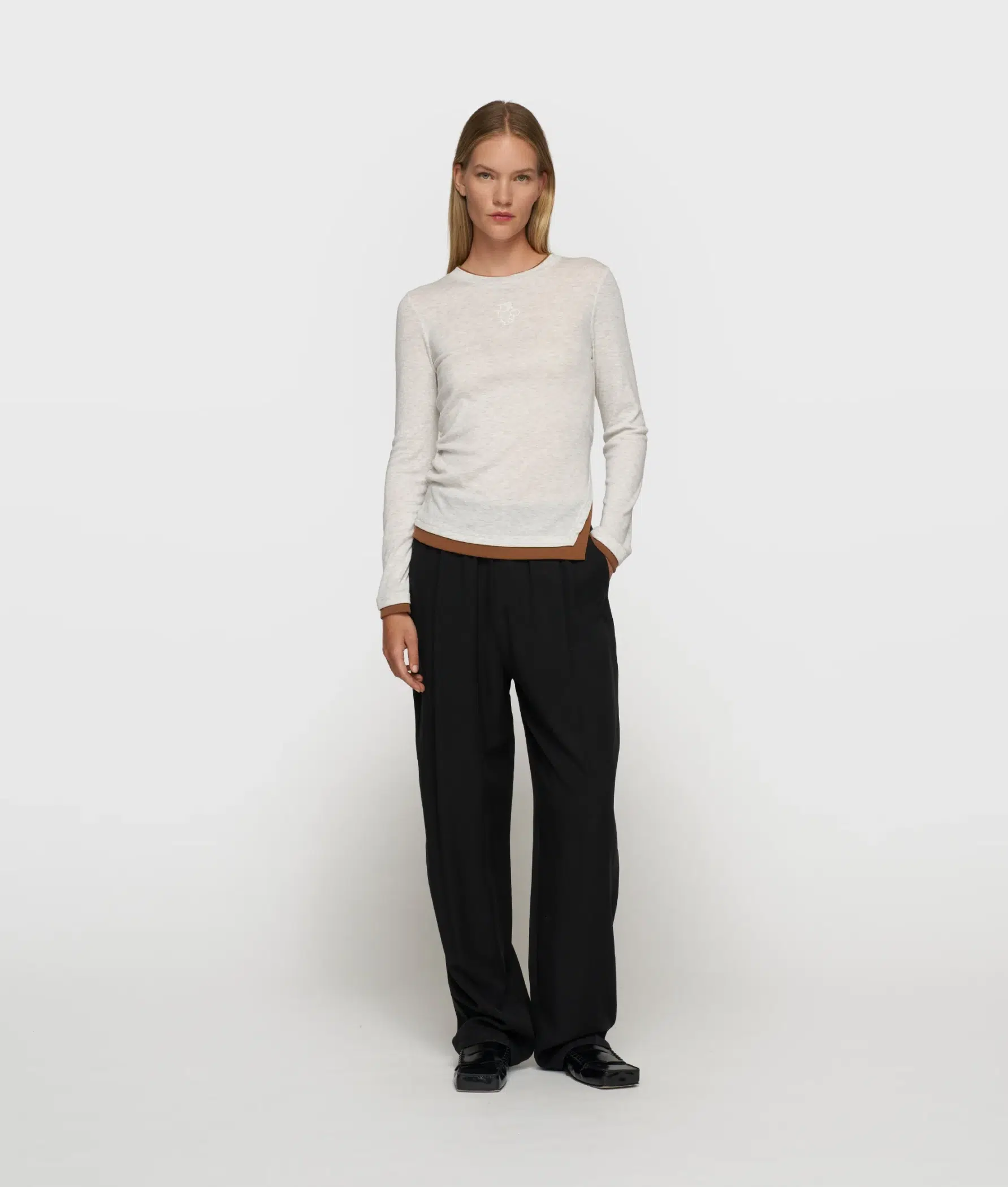 10DAYS Hose “Flowy Pants lyocell” schwarz. Relaxed Fit Flowy Hose, aus weichem Twill gefertigt. Mit einem elastischen Taillenbund mit Gürtelschlaufen, schrägen Eingrifftaschen, angedeuteten Gesäßtaschen und einem unterhalb der linken Eingrifftasche aufgestickten „10“-Monogramm.