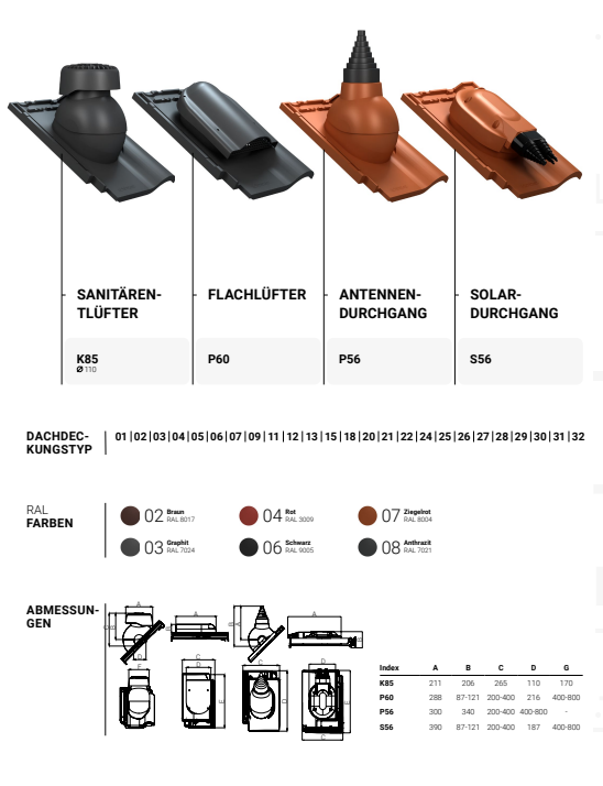 • Schrauben, farblich abgestimmt auf der Durchführung
