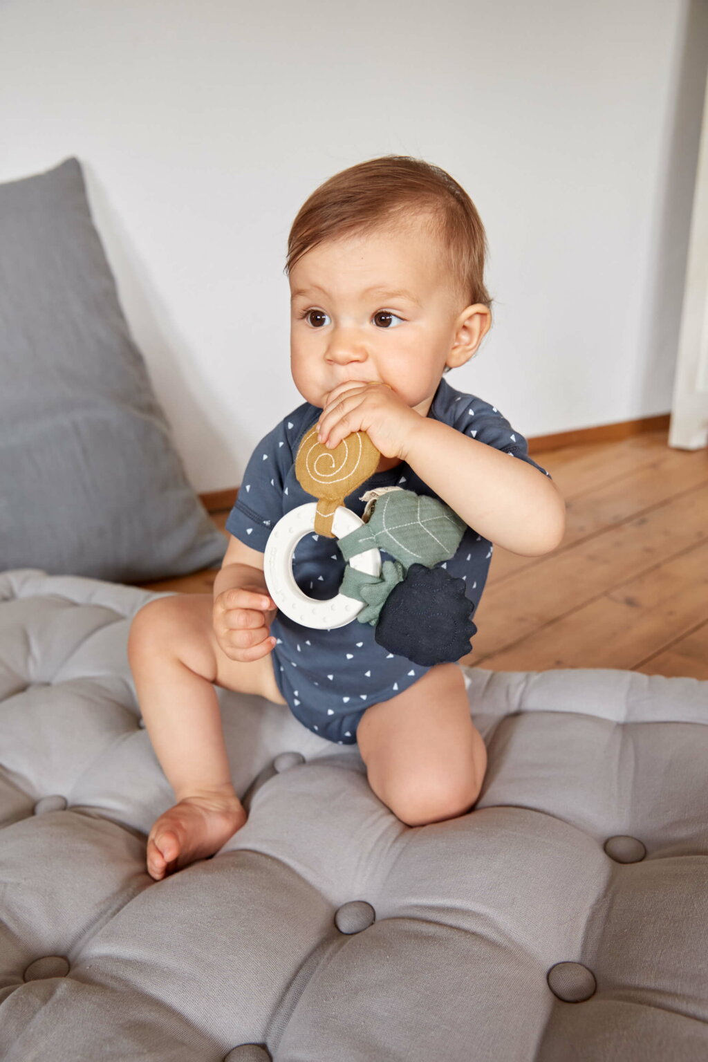 Der langärmelige Wickelbody, Triangle Blue, für Neugeborene ist nicht nur praktisch, sondern durch die 100 % GOTS zertifizierter Bio-Baumwolle besonders weich und hautfreundlich. Ideal für Neugeborene.