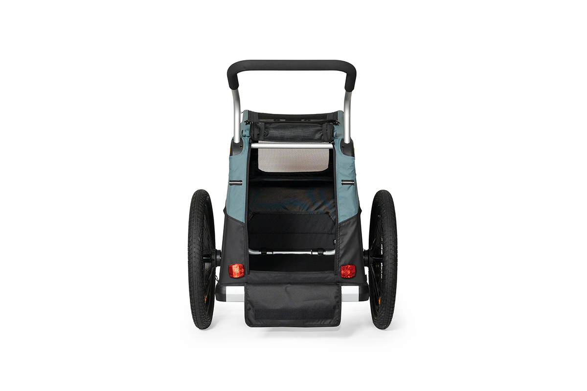 - Flex Connector ermöglicht flaches Ablegen des Fahrrades, während der Anhänger aufrecht stehen bleibt
