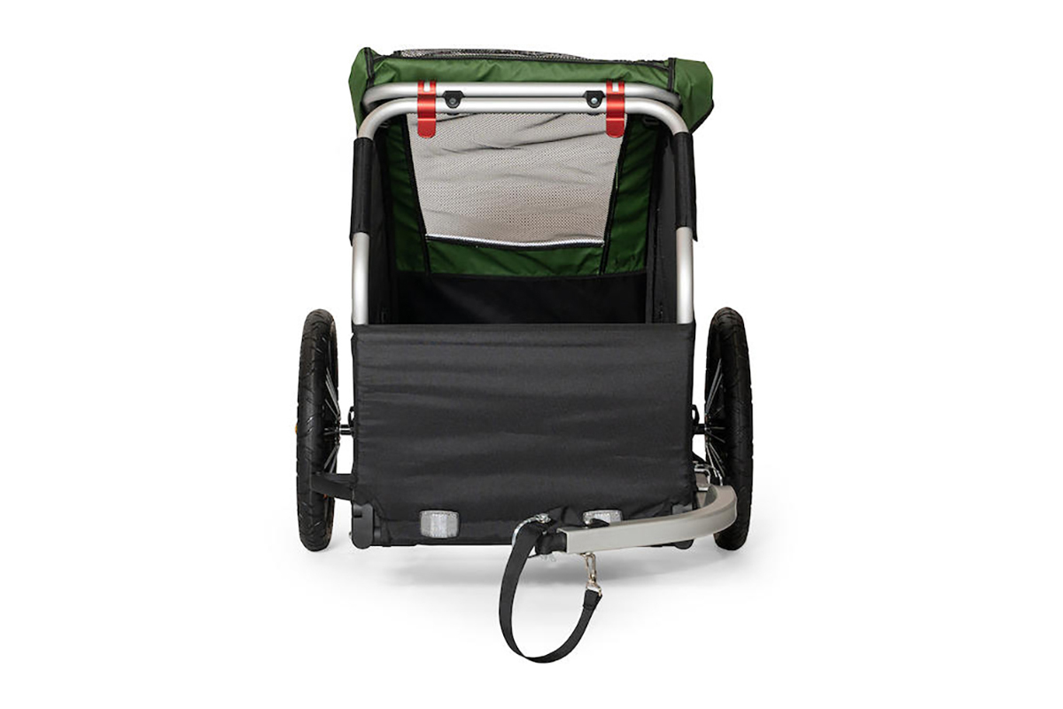 In den großzügigen Stautaschen können Sie Leinen, Abfallbeutel, Leckerlis und andere Dinge problemlos unterbringen. Dank der robusten Räder können Sie auch problemlos auf unbefestigtem Untergrund fahren. Nach der Fahrt lässt sich dieser leichte Anhänger schnell zusammenklappen und einfach verstauen, bzw. transportieren.