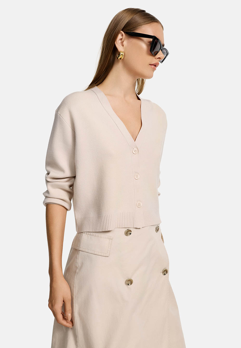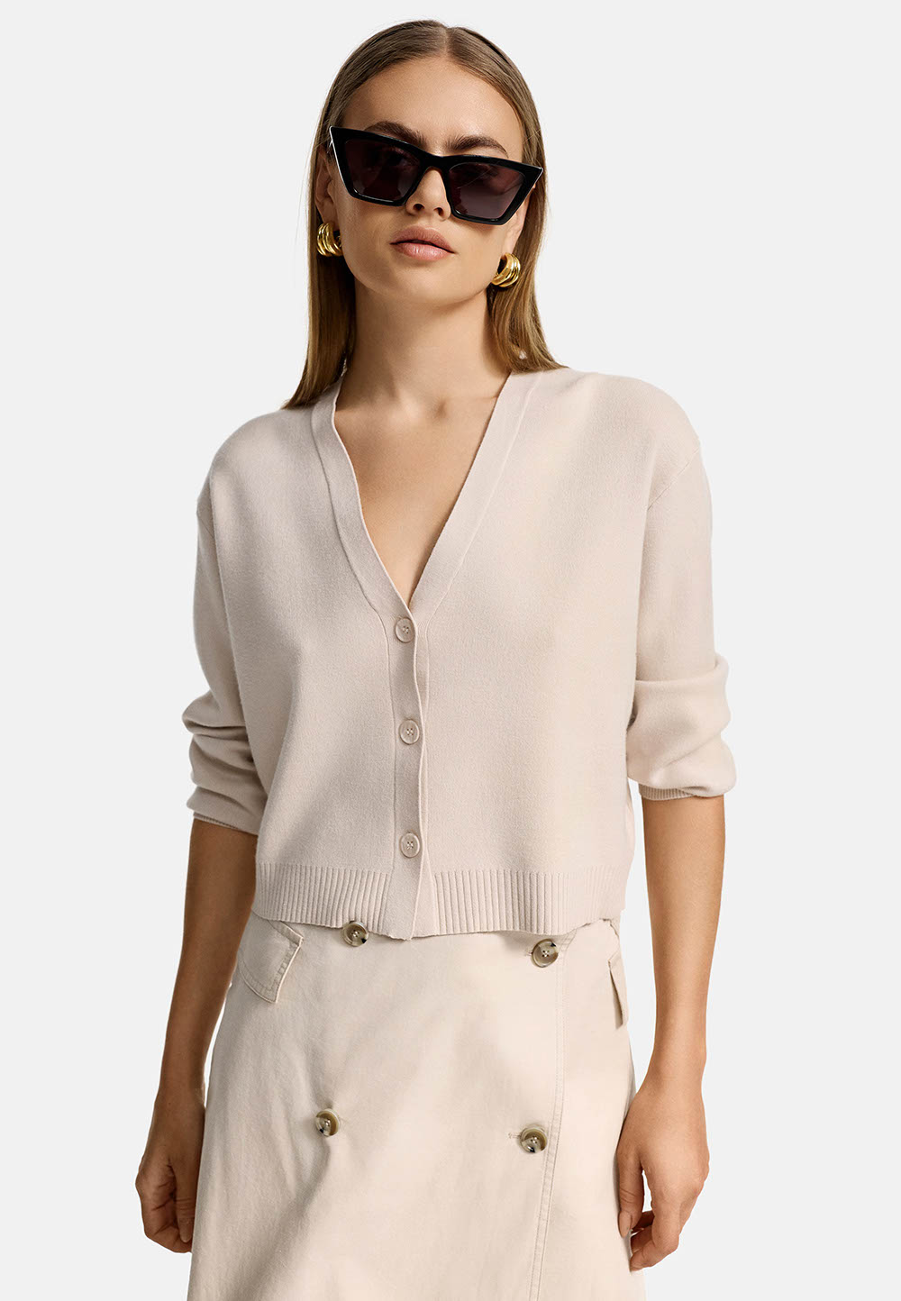 CATNOIR Cardigan/Strickjacke “Creme”. Der CATNOIR Cardigan in Creme ist eine modische und verkürzte Strickjacke, die durch ihren kastigen Schnitt besticht. Mit einer 3-Knopf-Schließe und langen Ärmeln bietet sie sowohl Stil als auch Komfort. Die lockere Passform sorgt für einen lässigen Look, der sich ideal für verschiedene Outfits eignet.