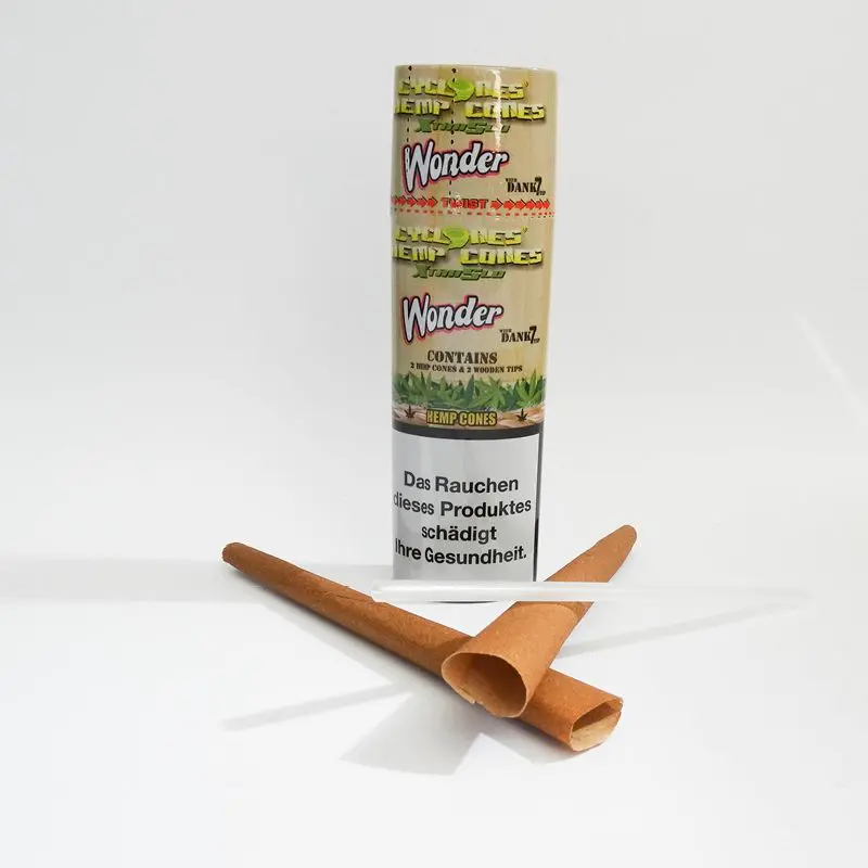 Cyclones Hemp Blunts sind die perfekten Blunts für alle Liebhaber selbstgerollter Zigarren. Ideal ist vor allem die konische Form dieses vorgerollten Blunts. Daher verspricht der Cyclone Blunt ein gleichmässiges Raucherlebnis. Ein Filtertip ist bereits mit eingerollt, so dass man nur noch den Tabak in den Cyclones Blunt füllen muss. Auch der Stopfer hierzu wird bereits mitgeliefert. Der fertige Blunt lässt sich in der praktischen Hülle sicher transportieren. 2 Blunts in 1 Tube 12 Tubes in 1 Pack Rauchen tötet! Tabak ist eine Droge und kann süchtig machen! Kein Verkauf unter 18Jahren Kann nicht per Kreditkarte (Visa, Mastercard) bezahlt werden!
