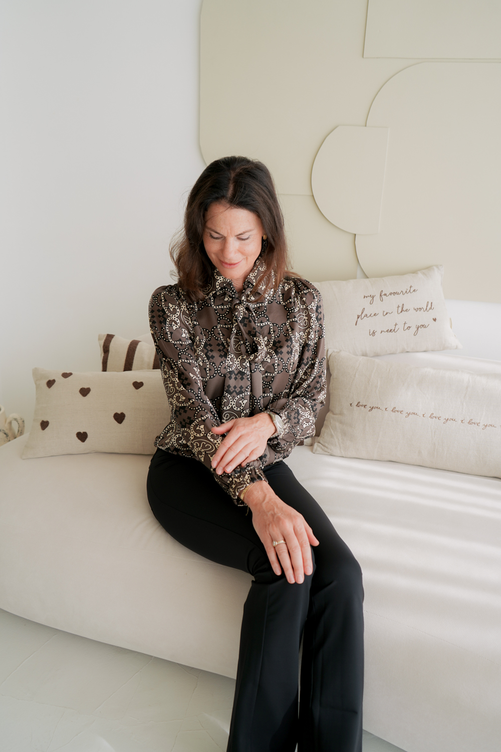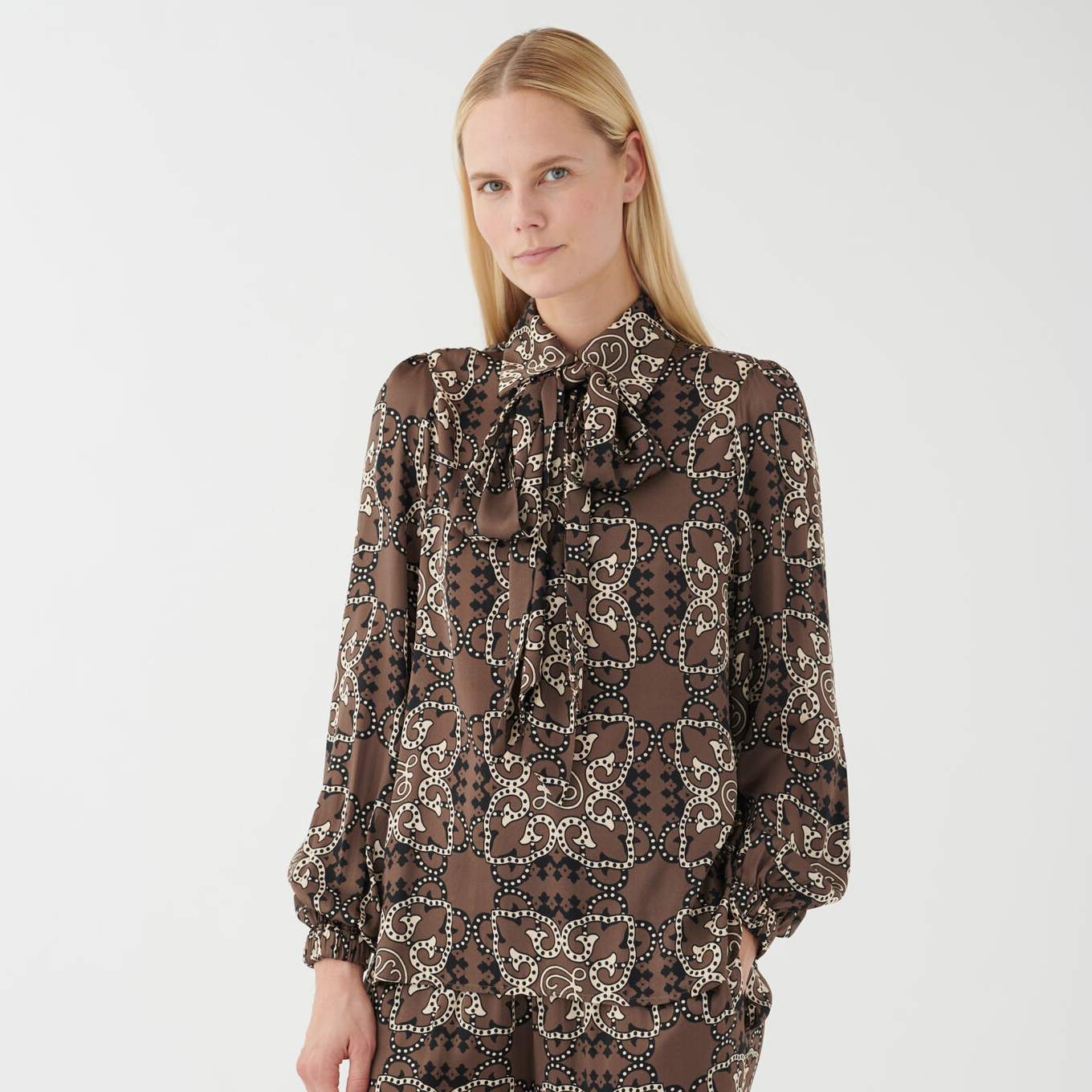 Dea Kudibal Bluse Seide “Kikki” Braun. Schick und raffiniert, verkörpert diese Seidenbluse mit einer großen Schleife am Hals die Quintessenz von Eleganz. Der tolle Print ist ausgefallen und eignet sich sowohl für den Tag als auch für den Abend. Die klassische Passform schafft eine feine Balance mit den Details der Bluse und macht sie schnell zu einem Favoriten in deinem Kleiderschrank