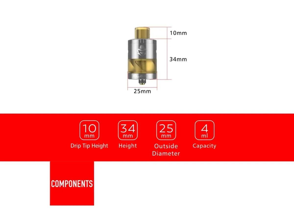 Höhe: 34.00 mm Tank und Topcap, ohne Drip Tip