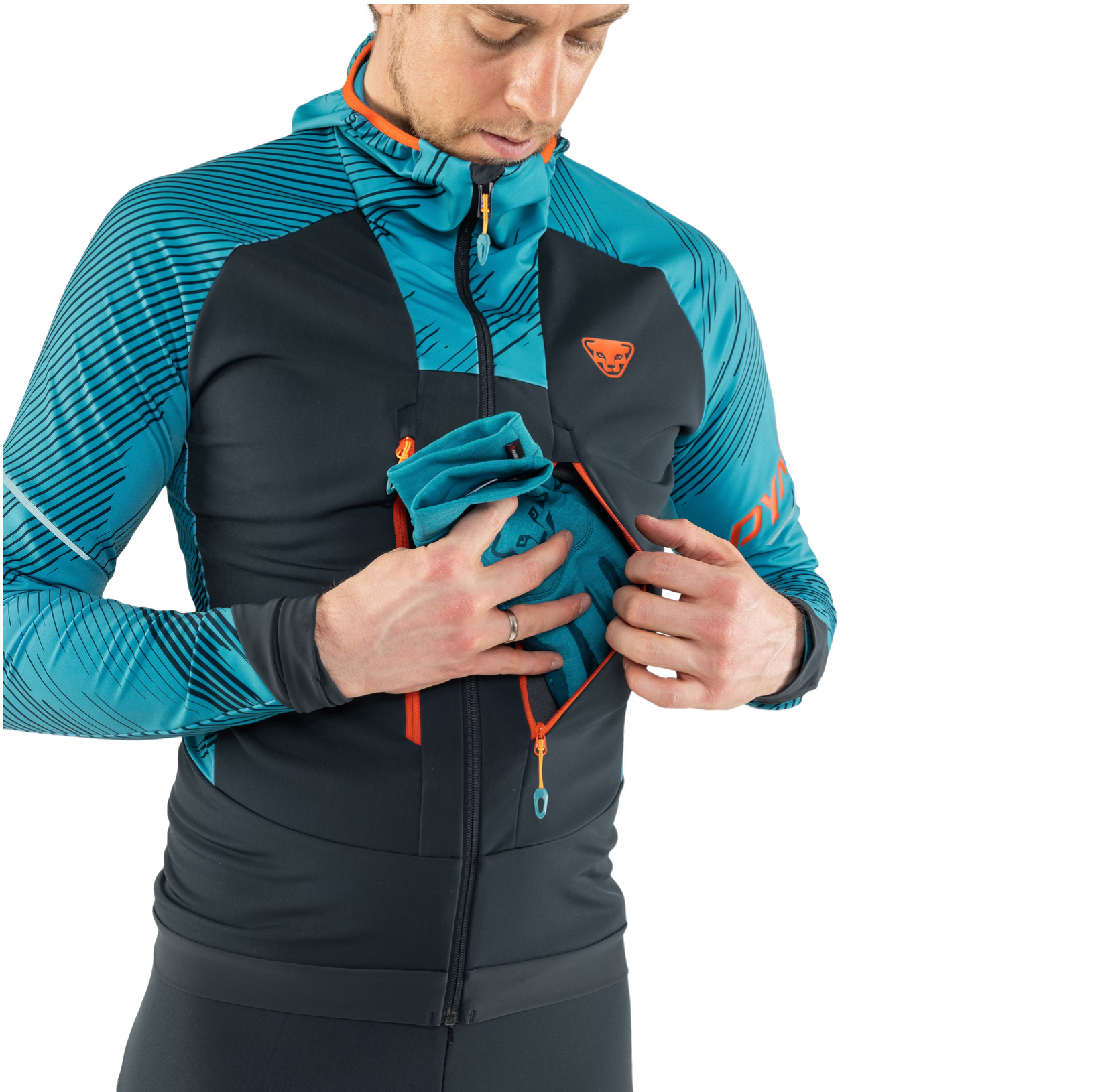 Die Mezzalama Race Jacke für Herren mit großen Taschen für die Felle ist Dein leistungsstarker Begleiter beim Training auf Deine Skimo-Rennen. Jedes Detail der technischen Stretch-Fleecejacke wurde auf die hohen Anforderungen und Bedürfnisse von Athleten ausgerichtet. Die eng anliegende Jacke besteht aus weichem, gebürsteten Stretch-Fleece am Körper und einem sehr atmungsaktiven Stretch-Nylon für die Ärmel. Dank der hohen Elastizität der Materialien hast Du jederzeit uneingeschränkte Bewegungsfreiheit auch bei intensivster Belastung. Der Rückenbereich, auf dem der Rucksack aufliegt, besteht aus luftdurchlässigem Mesh-Material. Elastische Abschlüsse am Saum und an den Ärmelbündchen halten die Jacke bei jeder Bewegung zuverlässig an Ort und Stelle. Die Skitourenfelle kannst Du schnell und einfach in den beiden großen Reißverschlusstaschen auf der Vorderseite verstauen. Zwei innere Mesh-Taschen bieten Platz für Gels oder Riegel. Das LVS-Gerät findet in einer zusätzlichen Reißverschlusstasche seinen Platz. Die eng anliegende Kapuze schützt Deinen Kopf zuverlässig vor kaltem Wind. In Kombination mit der Mezzalama Race Hose bildet die Jacke das perfekte Outfit für Deine Wettkampfvorbereitung. Mezzalama Race Jacke – Training ist alles.