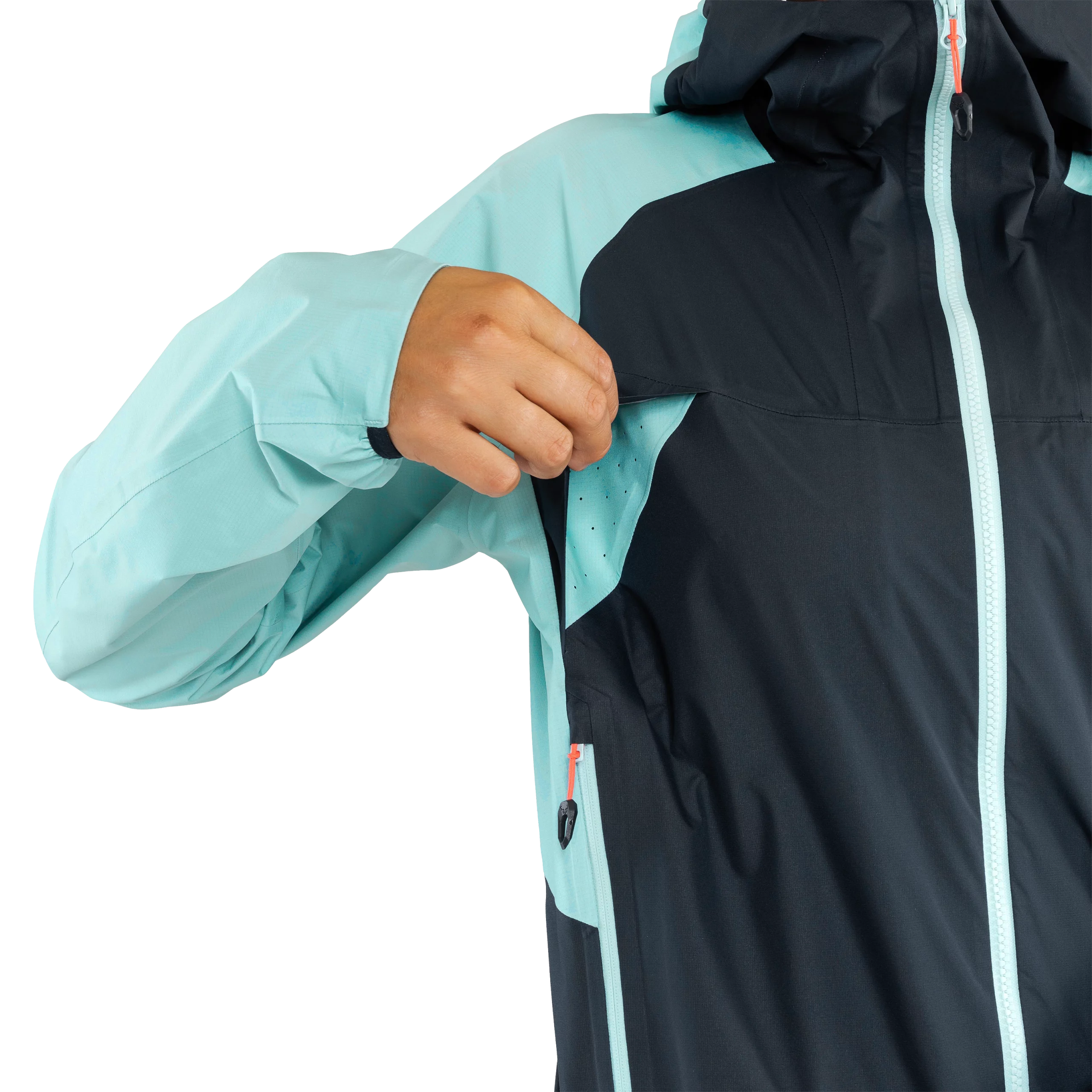 Die Transalper GORE-TEX Jacke ist dein verlässlicher Begleiter bei wechselhaftem Wetter. Die Jacke besteht aus einer Hybridkonstruktion aus GORE-TEX active und PACLITE® PLUS Material, wodurch sie extrem atmungsaktiv und leicht ist und dich auch bei starkem Regen trocken hält. Die spezielle Belüftungskonstruktion an den Achselhöhlen ermöglicht eine sehr gute Luftzirkulation und Temperaturregulierung. Die Kapuze ist so konstruiert, dass sie dir sowohl mit, als auch ohne Helm perfekt passt und sich deinen Bewegungen anpasst. So kannst du dich auch in schwierigem Gelände voll und ganz auf den Weg konzentrieren. Elastische Einfassungen am Saum und an den Ärmelbündchen sorgen für einen perfekten Sitz. Die zwei großen Vordertaschen bieten Stauraum für dein Handy, Energieriegel, Schlüssel etc.