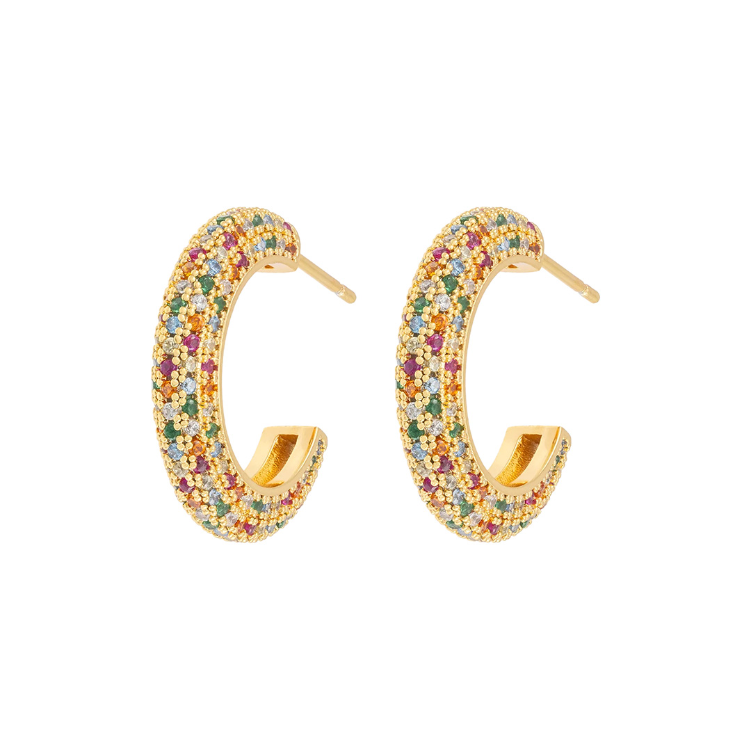 Emilia Creolen “Chunky Multi” M. Setze ein Statement mit den Creolen von Emilia by Bondep. Diese auffälligen Creolen aus hochwertigem Messing zeichnen sich durch ihre kräftige, moderne Form und das glänzende Finish aus, das deinem Look einen einzigartigen Touch verleiht. Die Multi-Farbgebung macht sie zu einem vielseitigen Begleiter, der sich perfekt in dein Schmuck-Repertoire einfügt – ob zu lässigen Outfits oder für den besonderen Anlass.