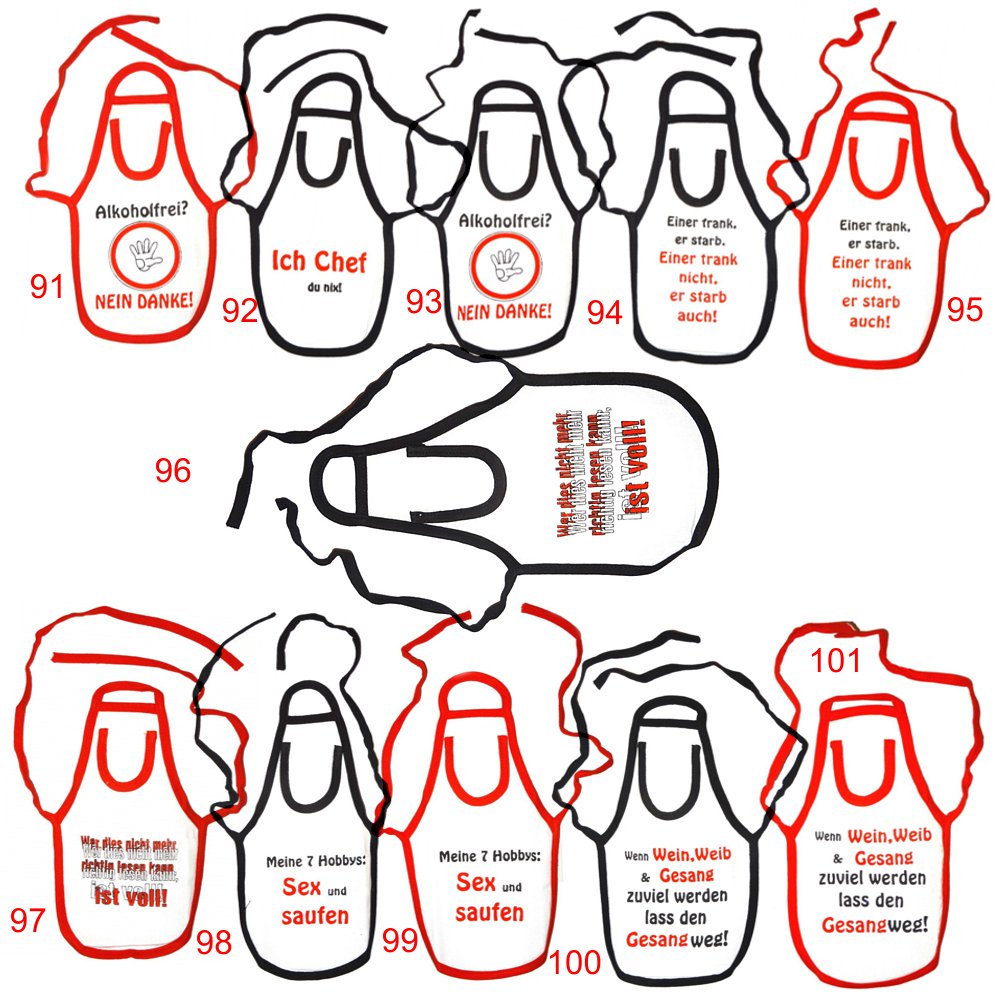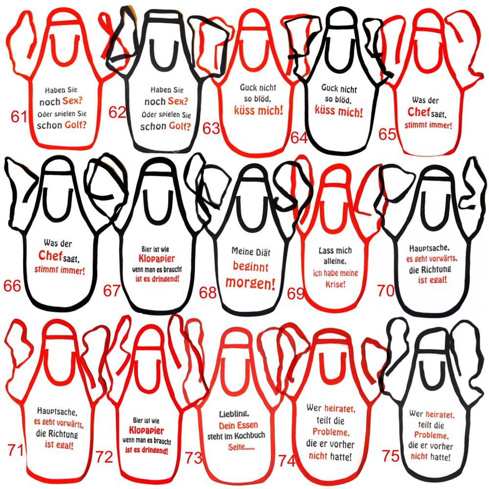 100% Baumwolle, waschbar mit 40° C, länge: ca. 24 cm, breite: ca. 12,5 cm, Schürzenlänge inkl. Schlaufe ca. 65cm
