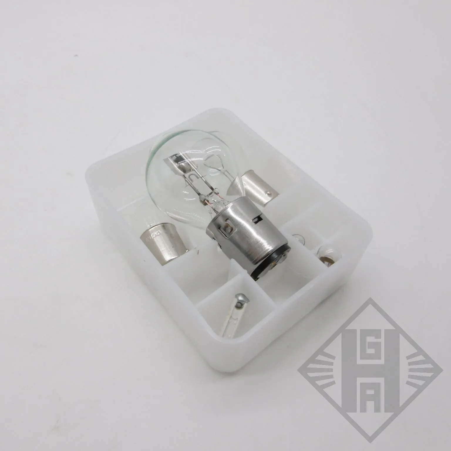 Hier kaufen Sie einen neuen Glühlampenkasten verwendbar für die Mopeds S51, S70 und Roller SR50, SR80. Enthalten in diesem Glühlampensortiment sind 12 Volt Glühbirnen 2W Ba7, 4W Ba9s, 5W Ba15s, 21W Ba15s, 35/35W Ba20d sowie eine Schmelzsicherung 8 Ampere. Der Ersatzbirnenkasten ist ein neuer Lagerartikel, welcher Lagerspuren aufweisen kann.