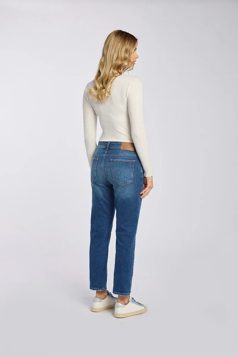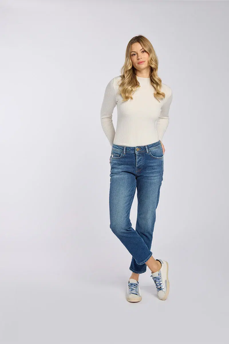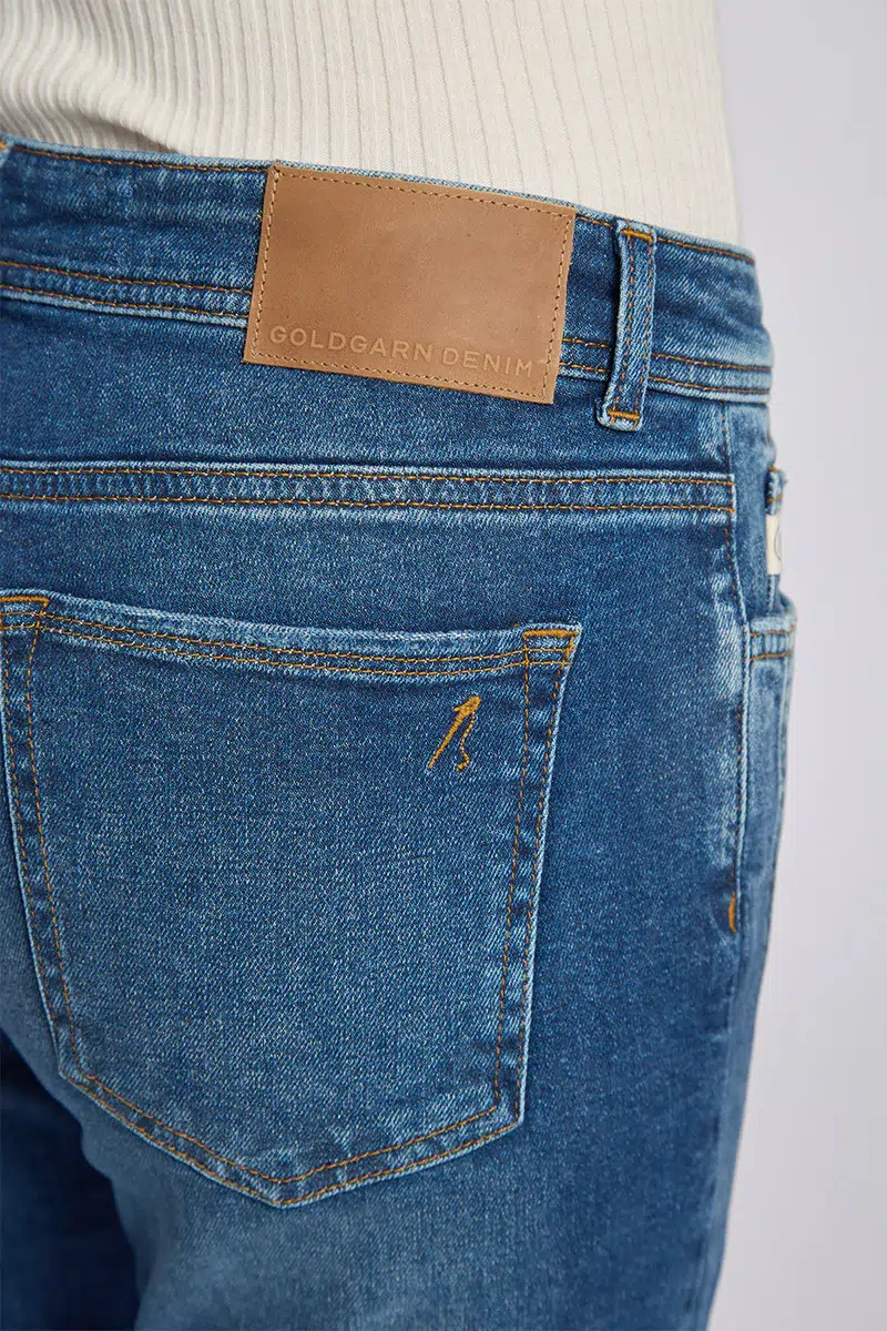 Goldgarn Jeans “C4 Relaxed Fit” Midblue. Unsere Five-Pocket Damen-Jeans in einem Relaxed-Fit ist in einem Blau-Ton gehalten.