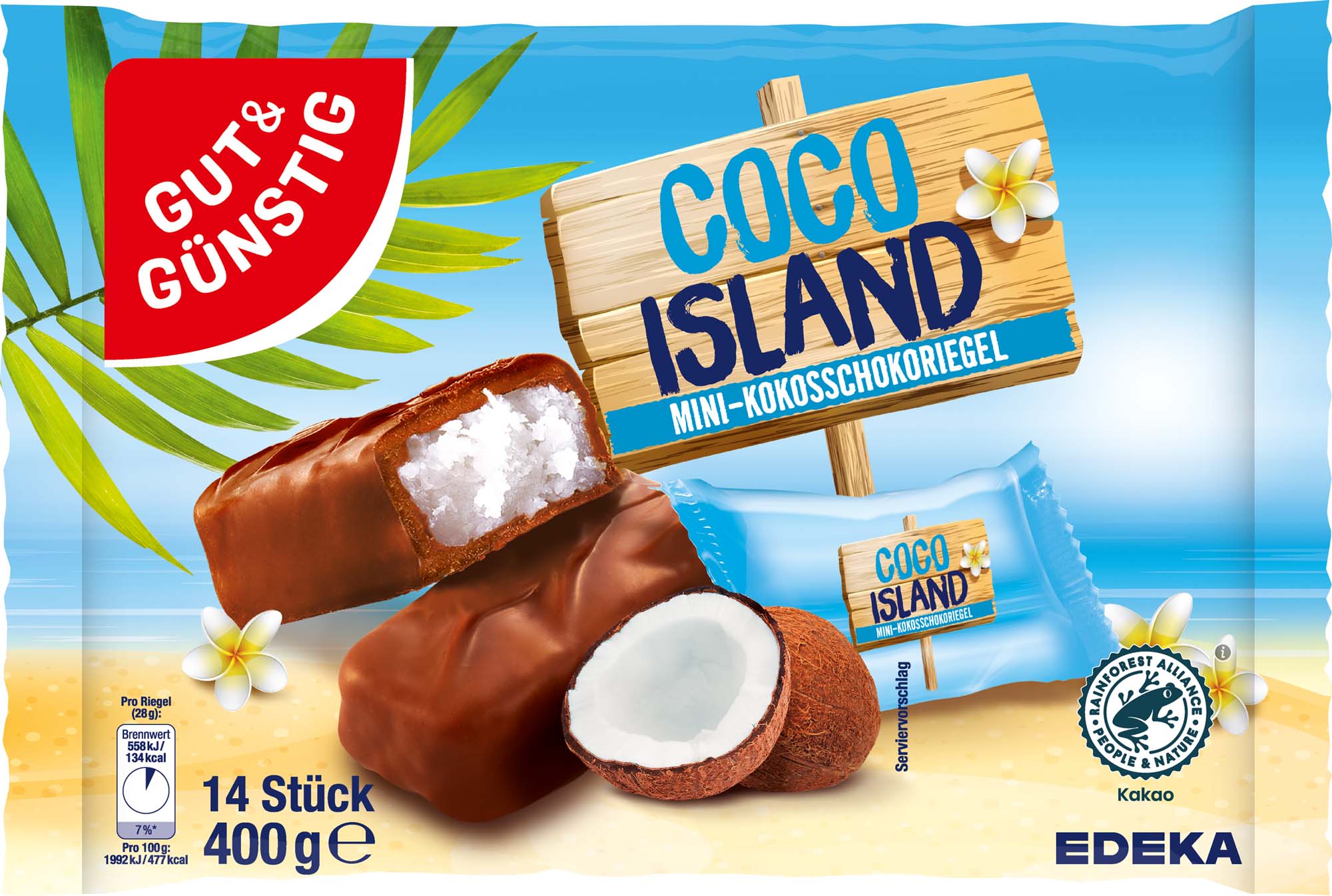 Gut & Günstig Mini-Kokos-Schokoriegel 400g