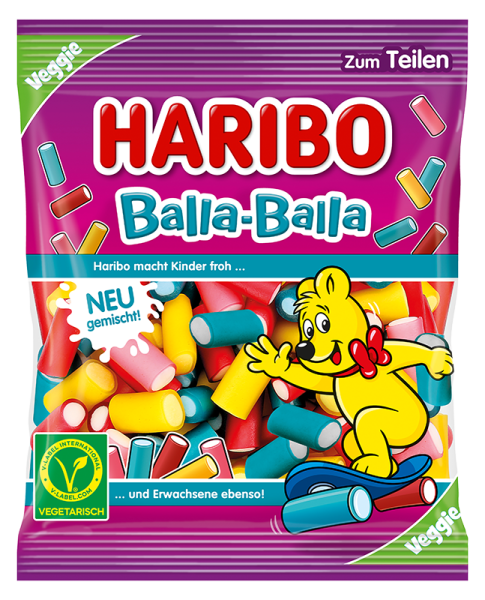 Die beliebte spanische Produktspezialität HARIBO Balla Stixx sind aromatische Fruchtgummi-Konfektstangen in der köstlichen Geschmacksrichtung Erdbeere.