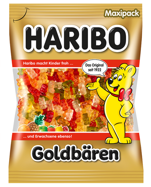 Unsere Nummer 1 im Süßwarenregal! Generationen lieben sie und sind mit ihnen groß geworden. Die HARIBO Goldbären sind seit über 90 Jahren unser Erfolgsprodukt in den lecker-fruchtigen Geschmacksrichtungen Ananas, Apfel, Erdbeere, Himbeere, Saftorange und Zitrone. In der 1000 g-Beutelabpackung eignen sich die Goldbären perfekt für Feste und Veranstaltungen oder einen Abend mit Freunden.