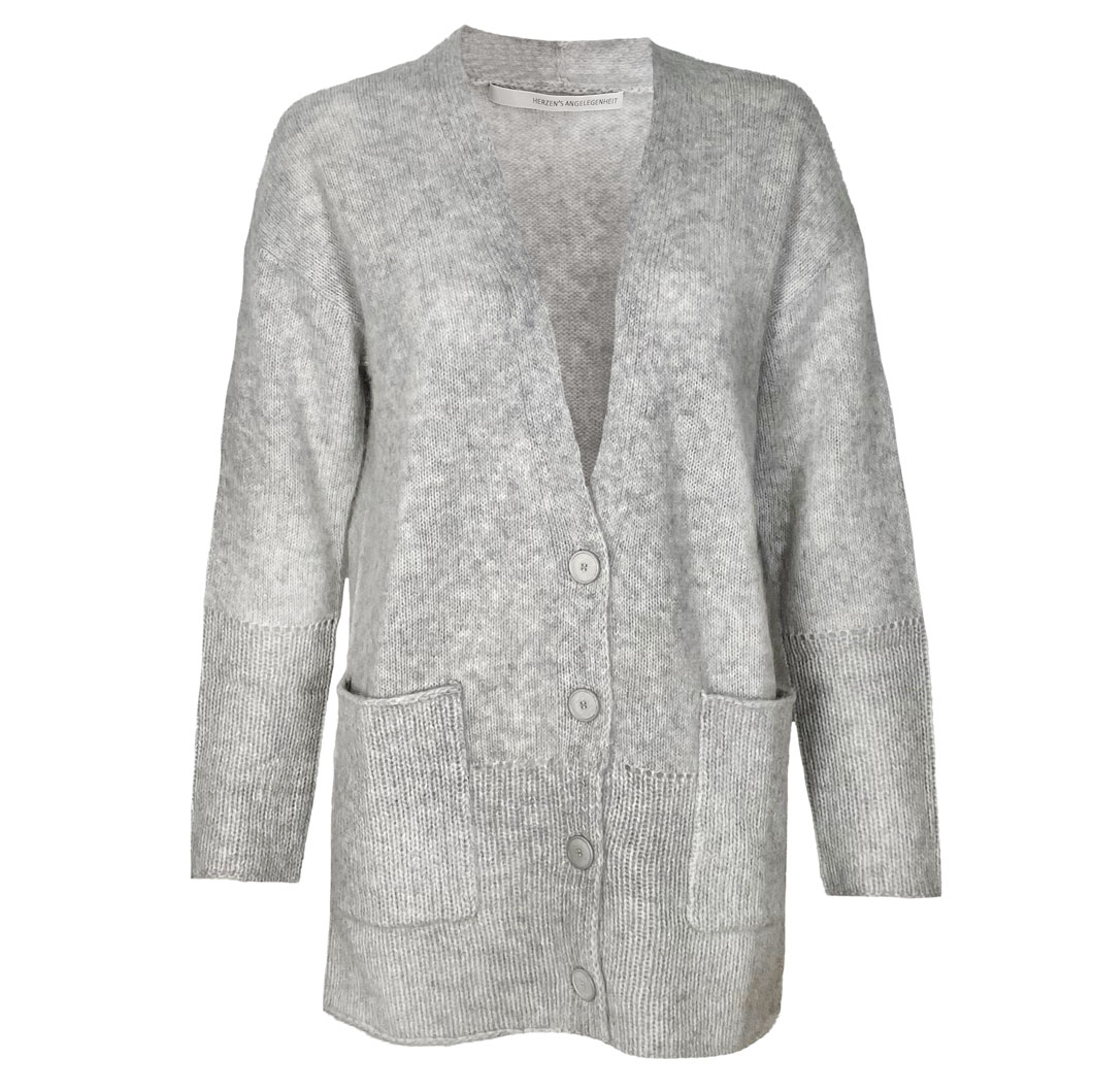 Herzen´s Angelegenheit Cardigan/Strickjacke “Silverlight”. Der Herzen´s Angelegenheit Cardigan “Silverlight” ist eine elegante und vielseitige Strickjacke mit längerer Passform, die Komfort und Stil perfekt vereint. Der lockere Schnitt sorgt für eine lässige, entspannte Silhouette und macht den Cardigan zu einem idealen Begleiter für verschiedene Looks. Das Design zeichnet sich durch eine durchgehende Knopfleiste aus, die das An- und Ausziehen erleichtert und dem Cardigan einen klassischen Touch verleiht. Die aufgesetzten Taschen an den Seiten bieten praktischen Stauraum und setzen gleichzeitig dezente Akzente im Design.