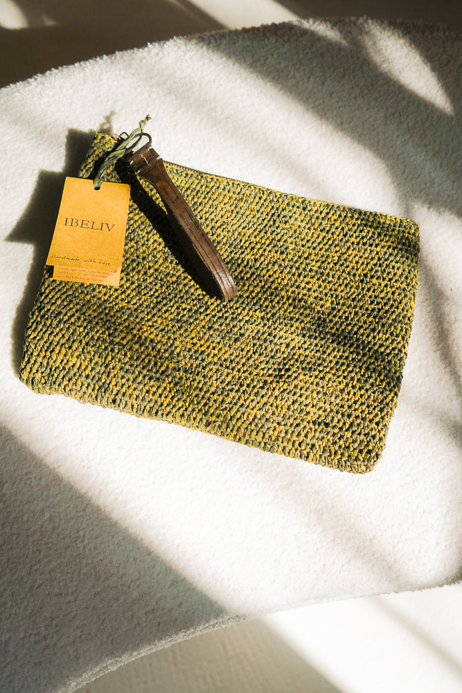 IBELIV Raffia Clutch “Ampy” Savane. Entdecken Sie die elegante IBELIV Raffia Clutch “Ampy” Savane – der perfekte Begleiter für stilbewusste Frauen. Mit ihren kompakten Maßen von 30 cm Länge und 22 cm Höhe bietet diese handgefertigte Basttasche ausreichend Platz für das Wesentliche, ohne dabei schwer zu sein.