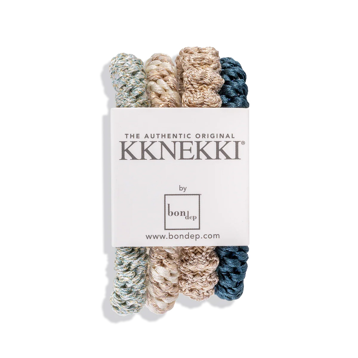 KKNEKKI Haargummi Bundle Set 4 Stk. “Beige Petrol”. Dieses 4er-Pack KKNEKKI Haargummis bietet eine harmonische Mischung schöner Farbtöne – perfekt, um jedem Style, Outfit oder Mood einen dezenten Farbakzent zu verleihen. Entdecke das unvergleichliche KKNEKKI Haargummi-Erlebnis. Bekannt für das charakteristische gewebte Design bietet dieses Haargummi zuverlässigen, sanften Halt und schützt dein Haar vor Bruch, Ziehen und Verheddern – perfekt für den Alltag.