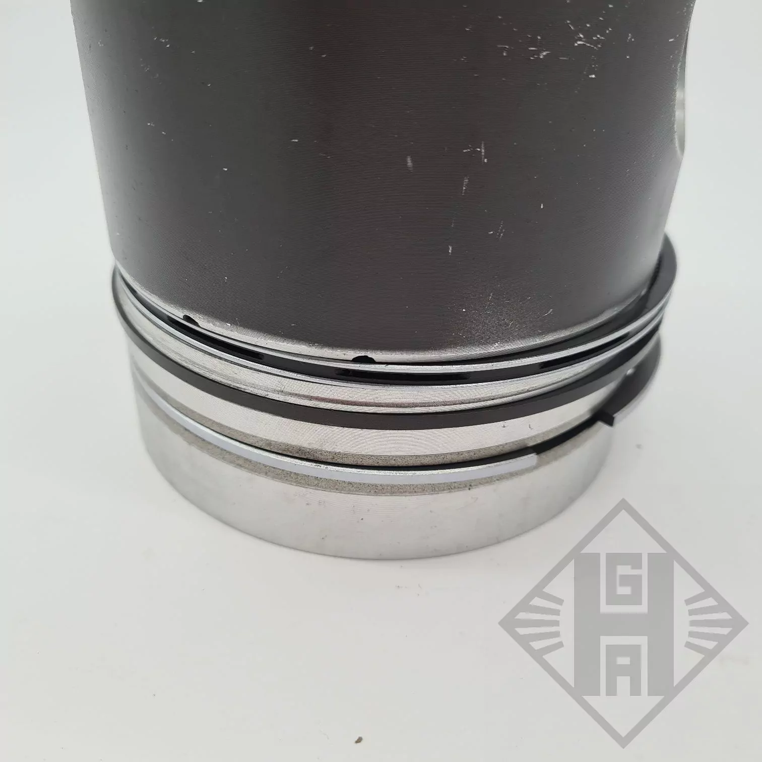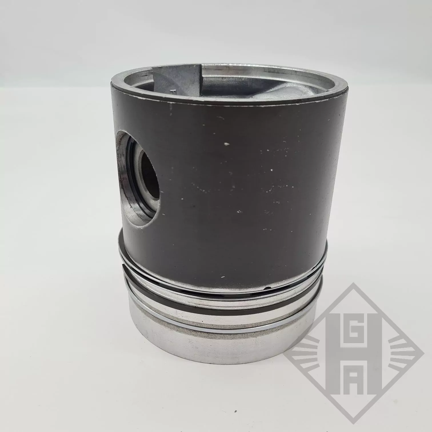 Es handelt sich um einen Kolben mit Kolbenringen, der Außenmantel des Kolbens ist graphitiert.