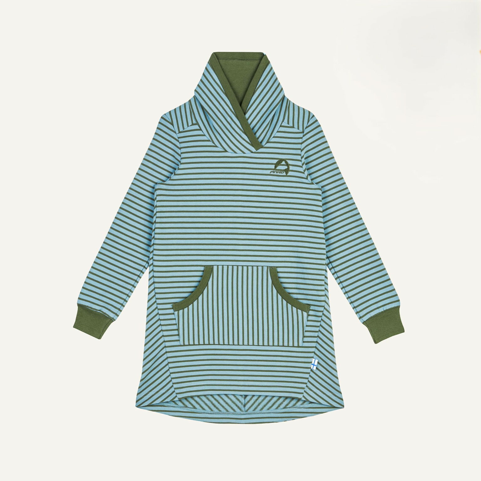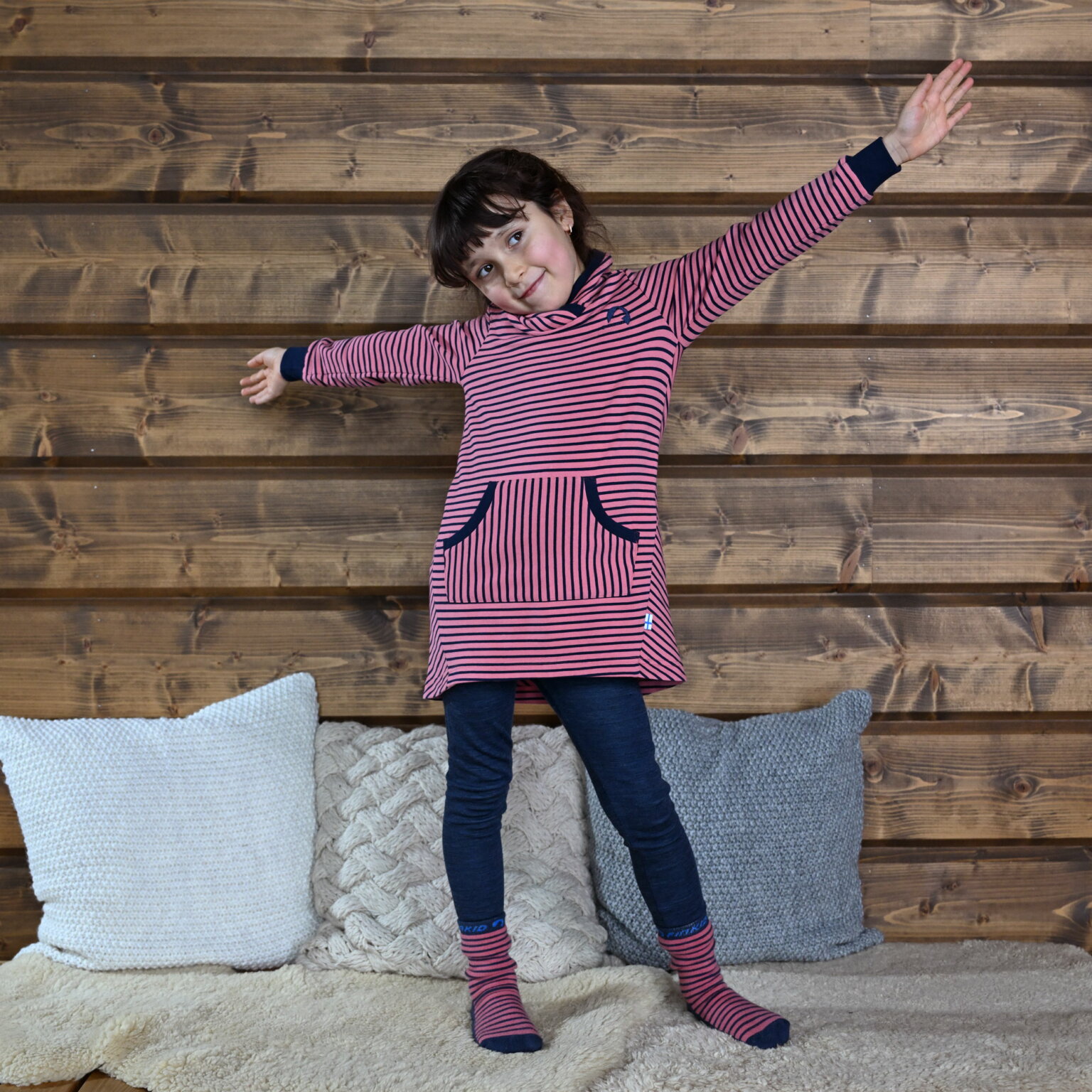Wer denkt, der Sommer sei die beste Zeit für Kleider, kennt LUMIKKO noch nicht. Das gemütliche Ringelkleid mit Schalkragen ist ein echter Hingucker. Und auch an kühlen Tagen total gemütlich! Die kuschelige Biobaumwolle wirkt wärmeisolierend, die aufgesetzte Tasche an der Vorderseite bietet Platz für Kinderhände oder das aktuelle Lieblingsfundstück. In attraktiven Farbvarianten.