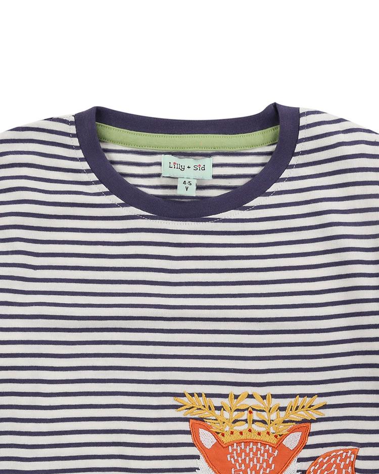 Jersey-Streifen und Fox Queen-Applikation machen einen lustige Aussage auf diesem Langarm-Jersey-Top. Hergestellt aus 100 % Baumwoll-Jersey-Stoff, sieht der marineblaue Streifen einfach toll aus.