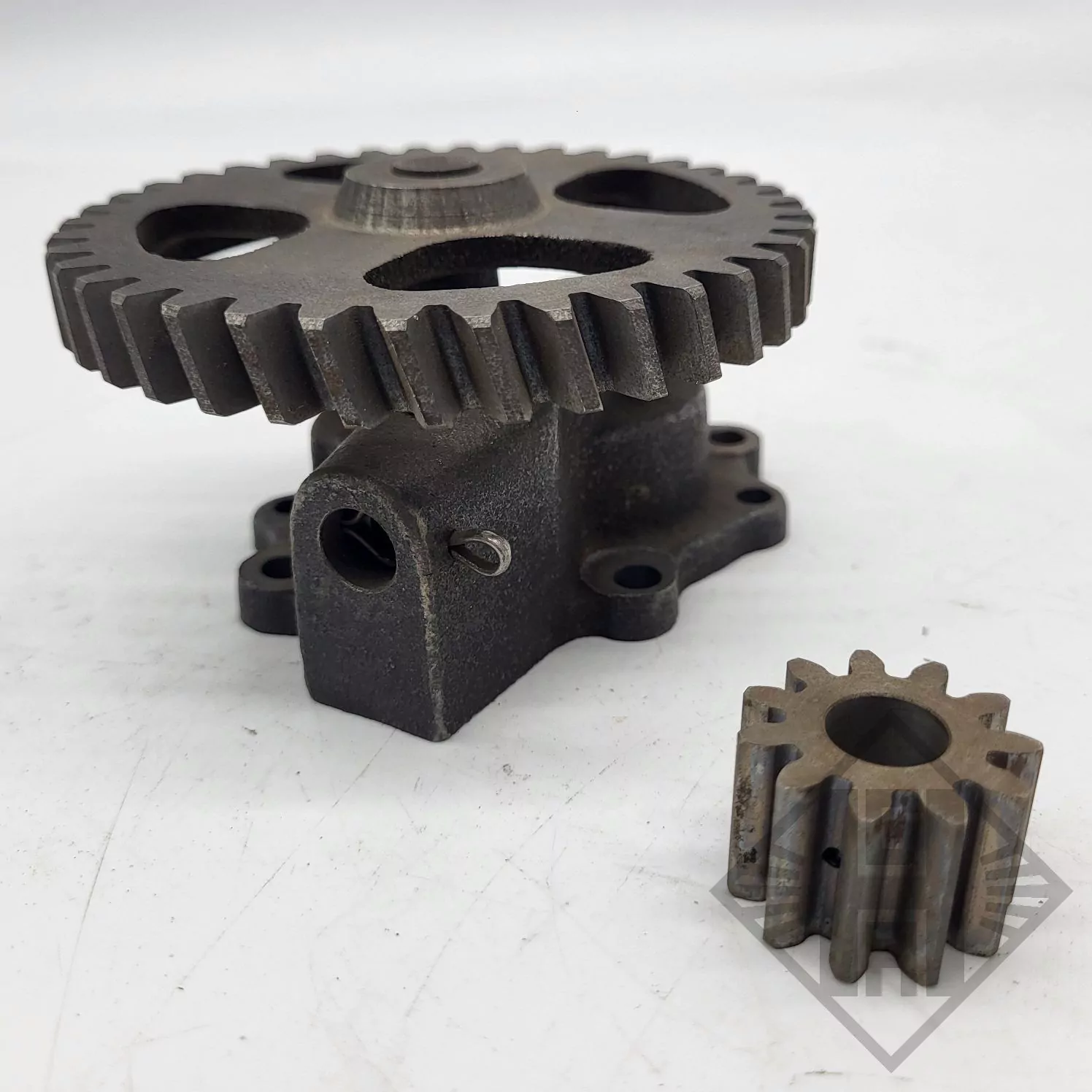 Hier können Sie eine neue Zahnradpumpe passend für den Multicar M22 erwerben. Die Ölpumpe ist komplett mit Zahnrädern und 6-Loch Befestigung. Es handelt sich um ein original Ersatzteil welches Lagerspuren aufweisen kann.
