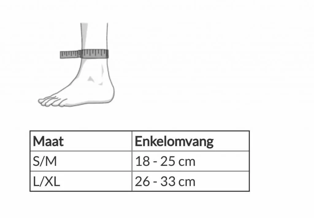 Die Össur Rebound Foot Up Drop Fußstütze ist in zwei Größen erhältlich; S/M und L/XL. Sie messen den Umfang Ihres Unterschenkels, knapp über den Knöcheln (siehe Bild) und können dann in der untenstehenden Tabelle ablesen, welche Größe für Sie geeignet ist. Diese Drop-Fußorthese ist nur in Schwarz erhältlich.