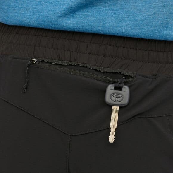 Reißverschlusstasche hinten in der Mitte mit elastischem Schlüsselband