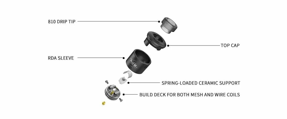 Das Aroma wird Schicht für Schicht freigesetzt für einen extrem klaren und intensiven Geschmack. Wechsele ganz einfach zwischen Drahtspulen/Coils und dem Gitternetz. Der Profile RDA hat einen Durchmesser von 24 mm und ist mit einer gefederten Keramikhalterung ausgestattet, dadurch ist der Kontakt zwischen Mesh und Watte gewährleistet. Das macht ihn extrem langlebig und hitzebständig.