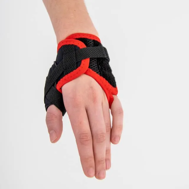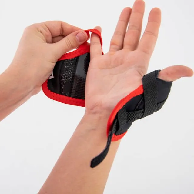 Die nicht elastischen X Straps der Reh4Mat Sport Thumb Brace halten den Daumen in 1 Position und machen eine Überstreckung des Daumengelenks unmöglich.