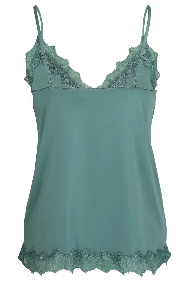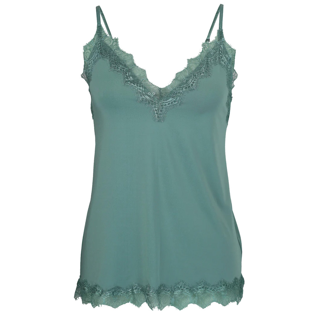 Rosemunde Spitzen Trägertop “Eucalyptus”. Schönes Spitzen Top mit V-Ausschnitt und verstellbaren Trägern. Es ist mit einer atemberaubenden Spitze sowohl oben als auch unten entworfen. Tragen Sie es wie es ist, unter einer Bluse oder unter einem Blazer für einen stilvollen Look.