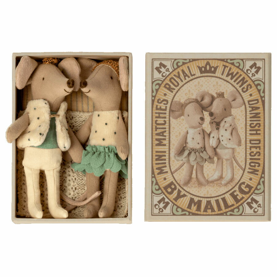 Die königliche Mäusefamilie wird mit diesen Zwillingen immer größer. Sie sind königlich mit ihren goldenen Kronen und schönen Kleidern & schlafen zusammen in einer liebevoll dekorierten Streichholzschachtel.