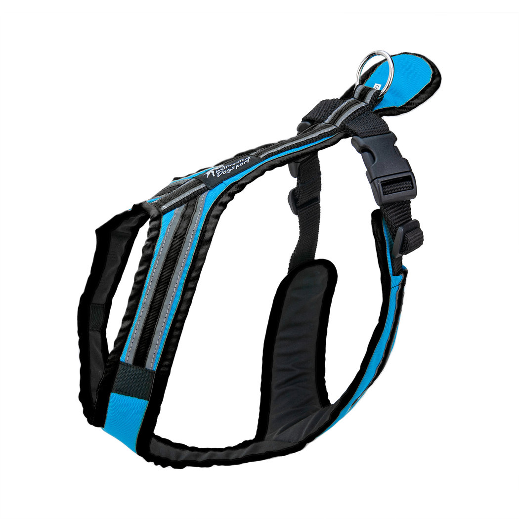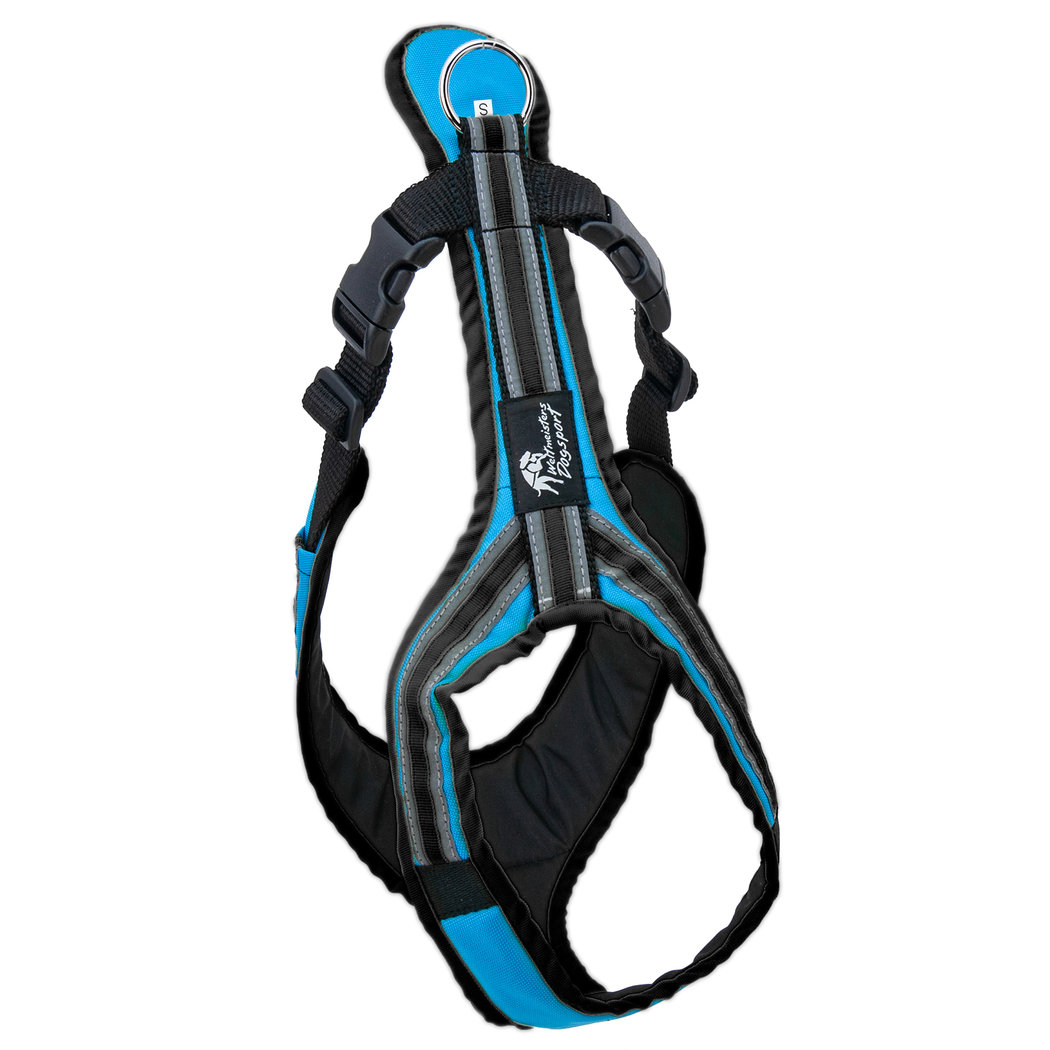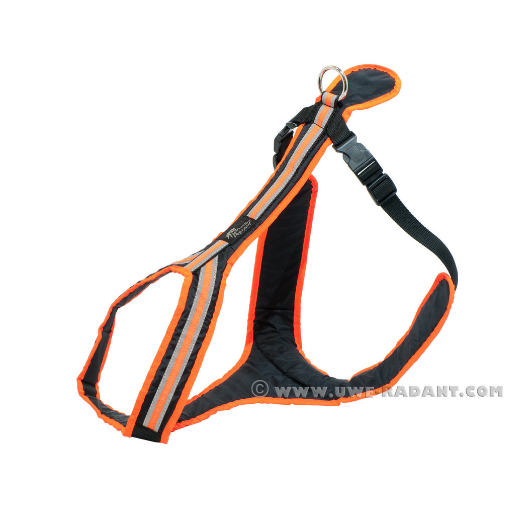 Zuggeschirr für Bikejöring, Trike, Scooter, Canicross. Durch die großflächige Auflage am Zugpunkt eignet sich das SAFETY im Besonderen auch für hart arbeitende Hunde.