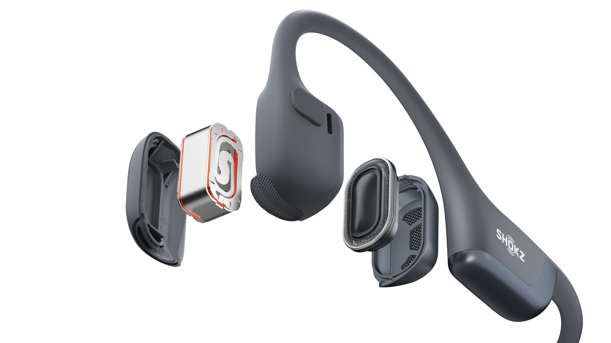 Die Technologie des Shokz OpenRun Pro 2 umfasst ein integriertes Design mit Komponenten, die in einem schützenden Metallfach untergebracht sind. Der EQ-Anpassungsalgorithmus vermeidet akustische Lecks, um Schallverluste effektiv zu kontrollieren, während die DirectPitch™-Technologie Lecks der Luftleitung minimiert und so für mehr Privatsphäre sorgt. Zusammen mit dem entkoppelten Design der Treiber wird eine unabhängige Funktionalität und höchste Privatsphäre gewährleistet.