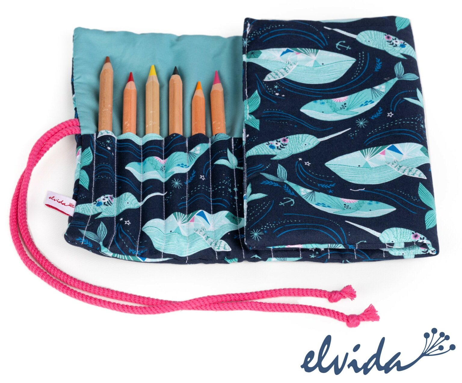 Stifterolle Stiftemappe Narwal pink