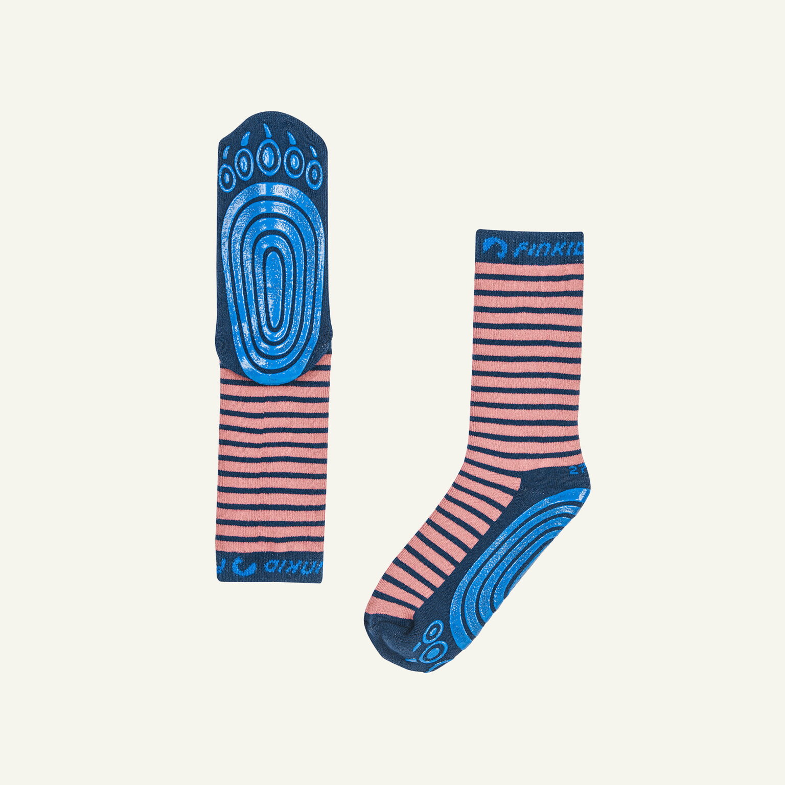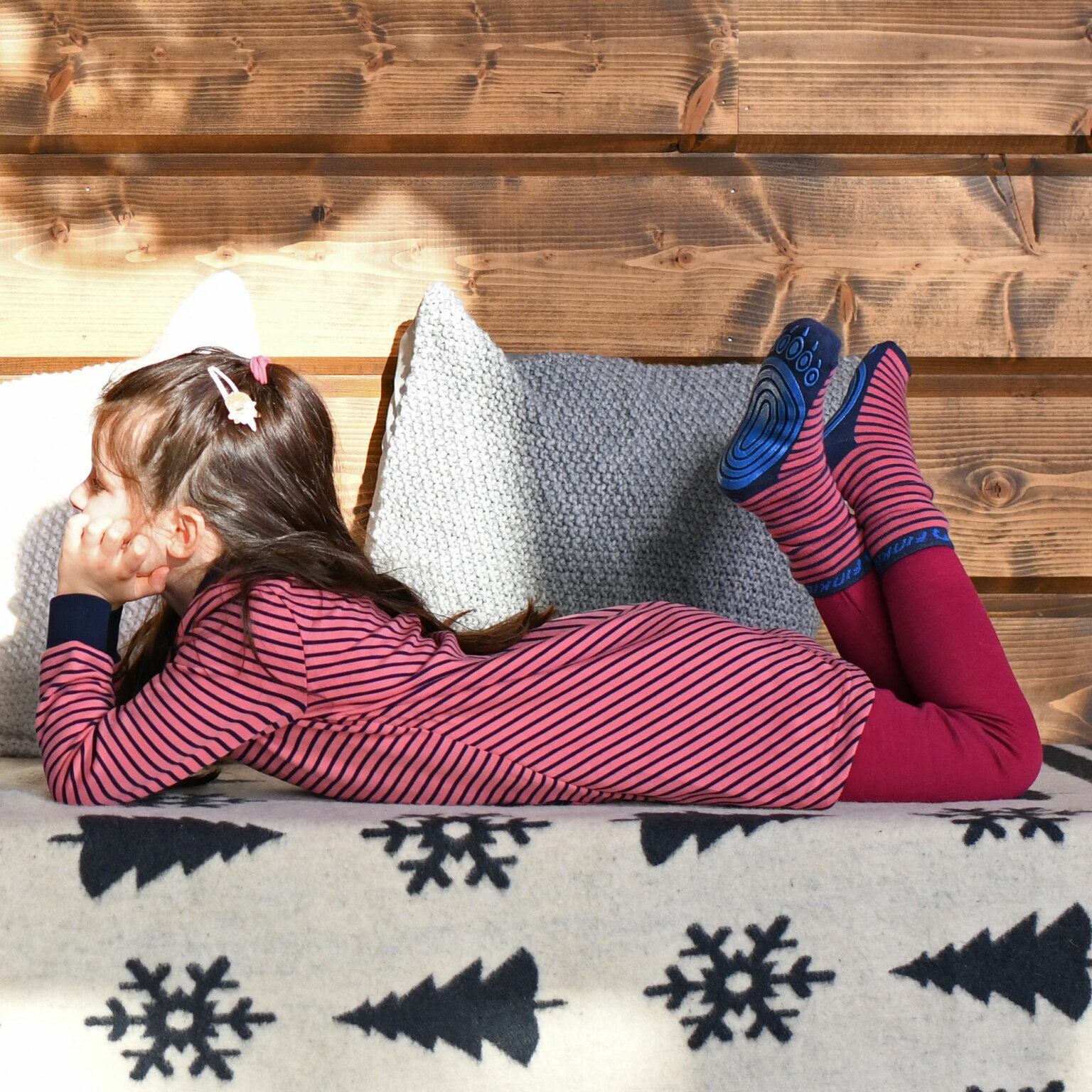 Da steppt der Bär! Diese Grip Sox mit Tatzenprofil verkürzen den Bremsweg der Kleinen. Die warme angenehme Baumwollmischung ist innen weich frottiert, formstabil und pflegeleicht. Praktischerweise ist die Größenbezeichnung eingestrickt. Die Profilgummierung macht die Sohlen luftdurchlässig. Bremst das Tempo, aber nicht den Spaß!
