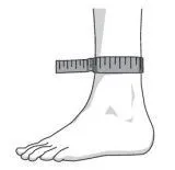 Die richtige Größe ist sehr wichtig. Sie können Ihre eigene Größe bestimmen, indem Sie die Größe Ihres Unterschenkels direkt über den Knöchelunebenheiten messen (siehe Abbildung oben). Die richtige Größe finden Sie dann in der folgenden Tabelle. Nehmen Sie im Zweifelsfall die kleinere der beiden Größen. Der Knöchelverband kann sowohl links als auch rechts getragen werden!