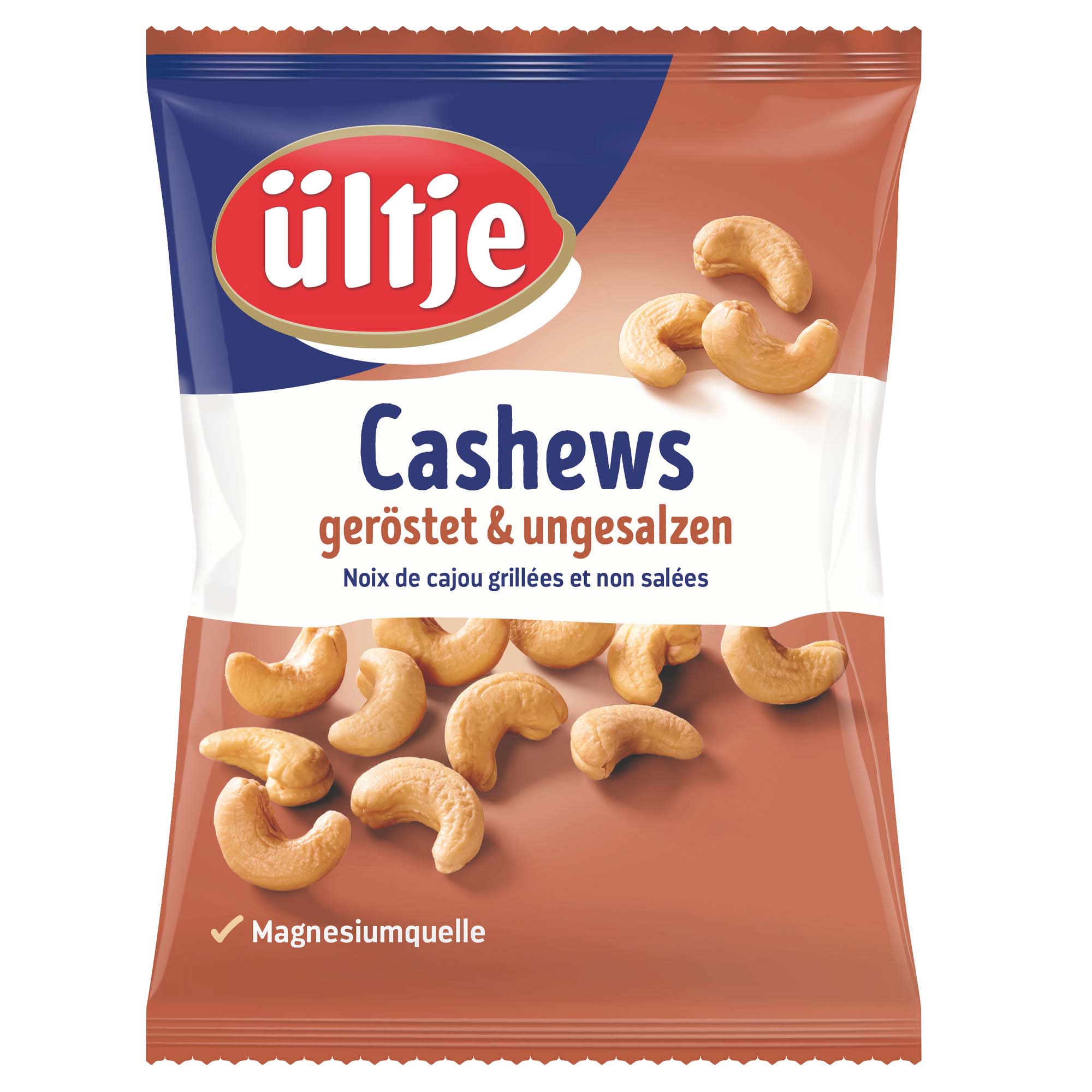Cashews zählen zu den beliebtesten Snacks der Knabbergemeinde. Wer kein Salz mag, der knabbert sie einfach wie sie von Natur aus sind: Dafür gibt es die ültje Cashews, geröstet & ungesalzen.